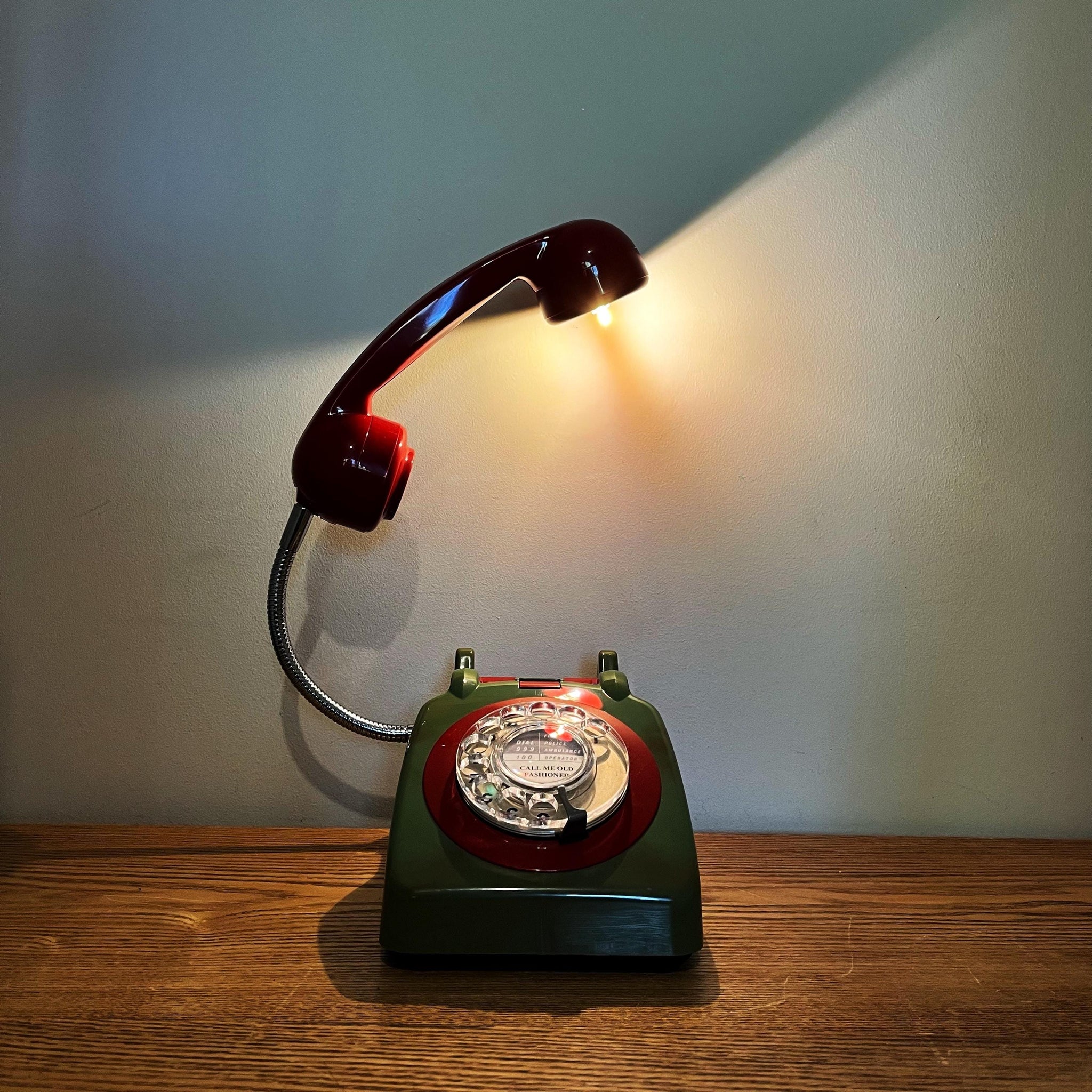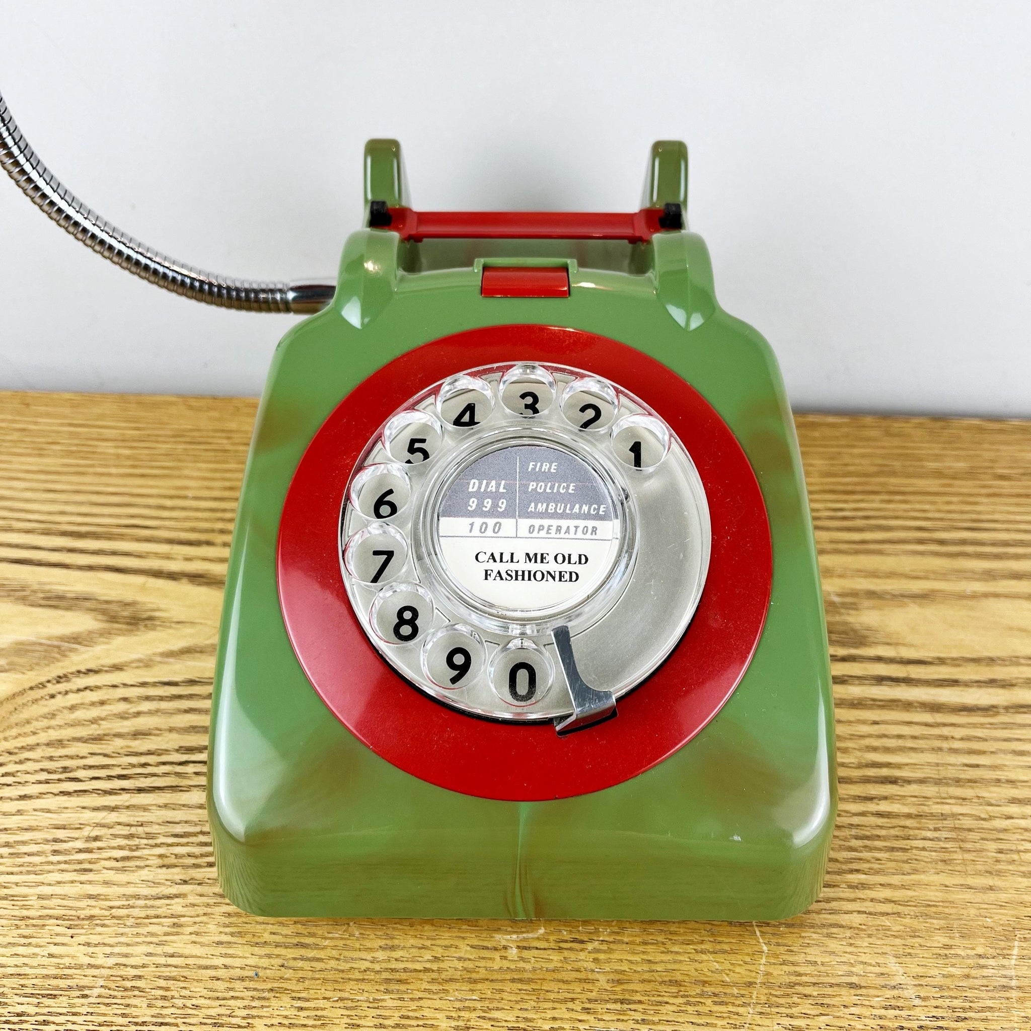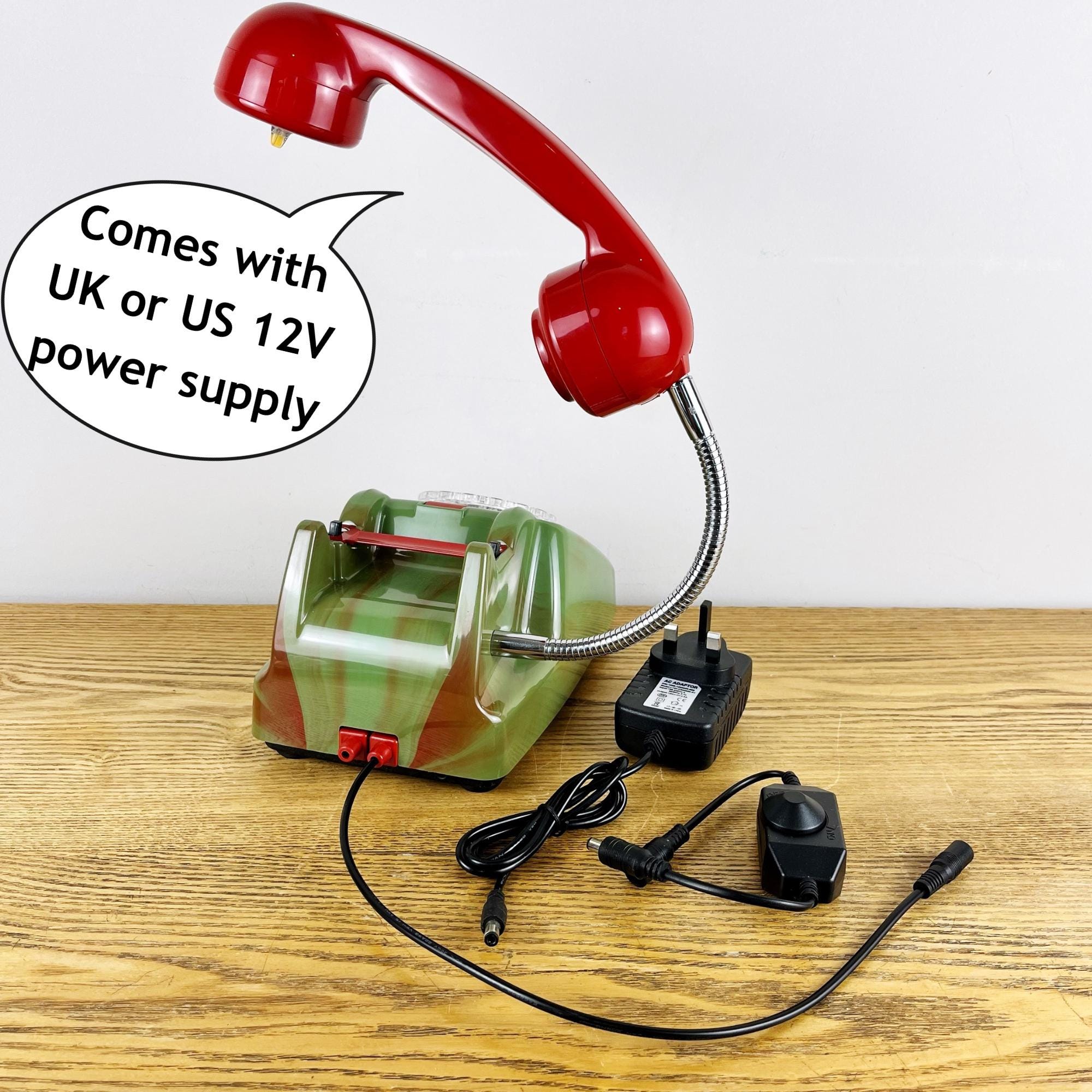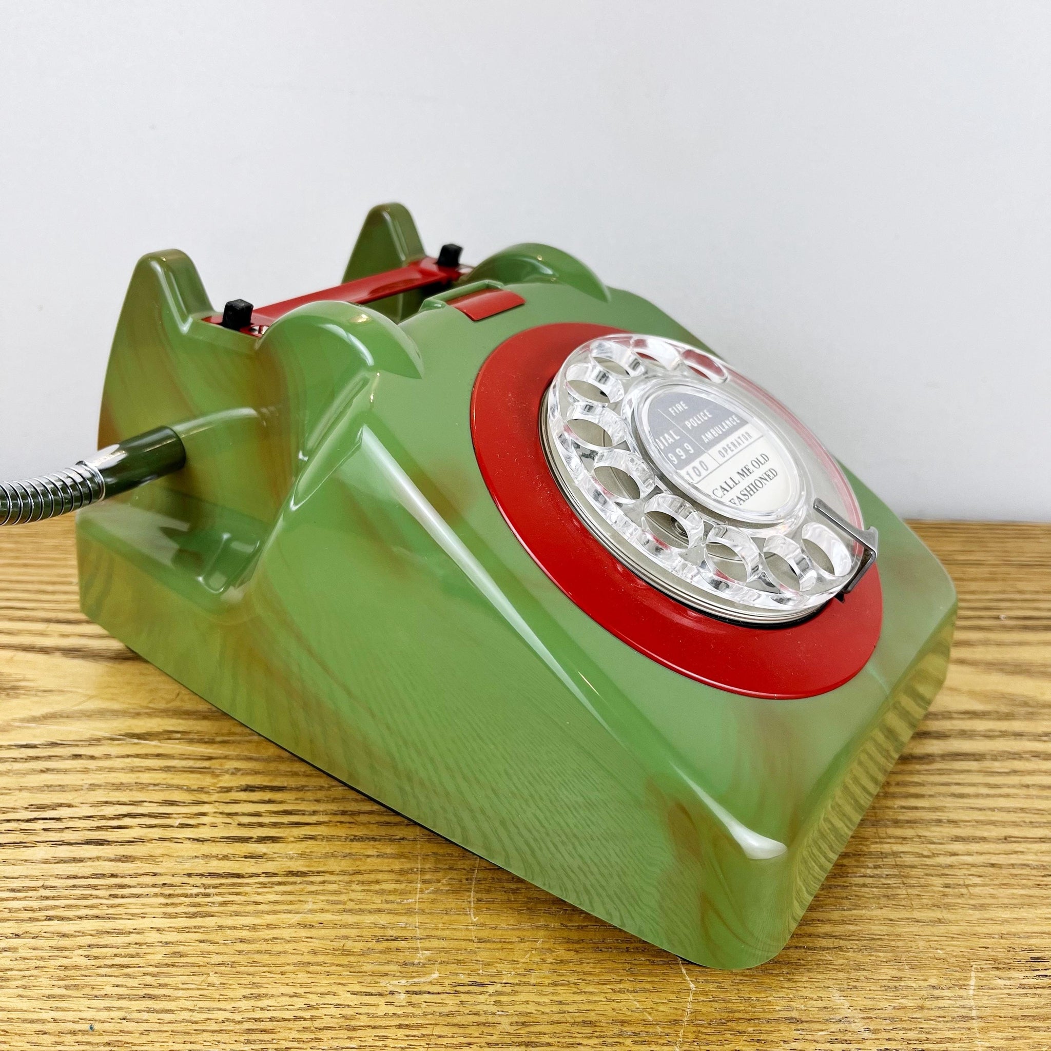 This fantastic marbled green & red telephone lamp is perfect if you're searching for mancave gifts or you are looking to buy something quirky and unique for a lover of vintage and retro decor. This marbled effect occurred when the colour was changed in the original production runs. The workers often kept these for themselves.