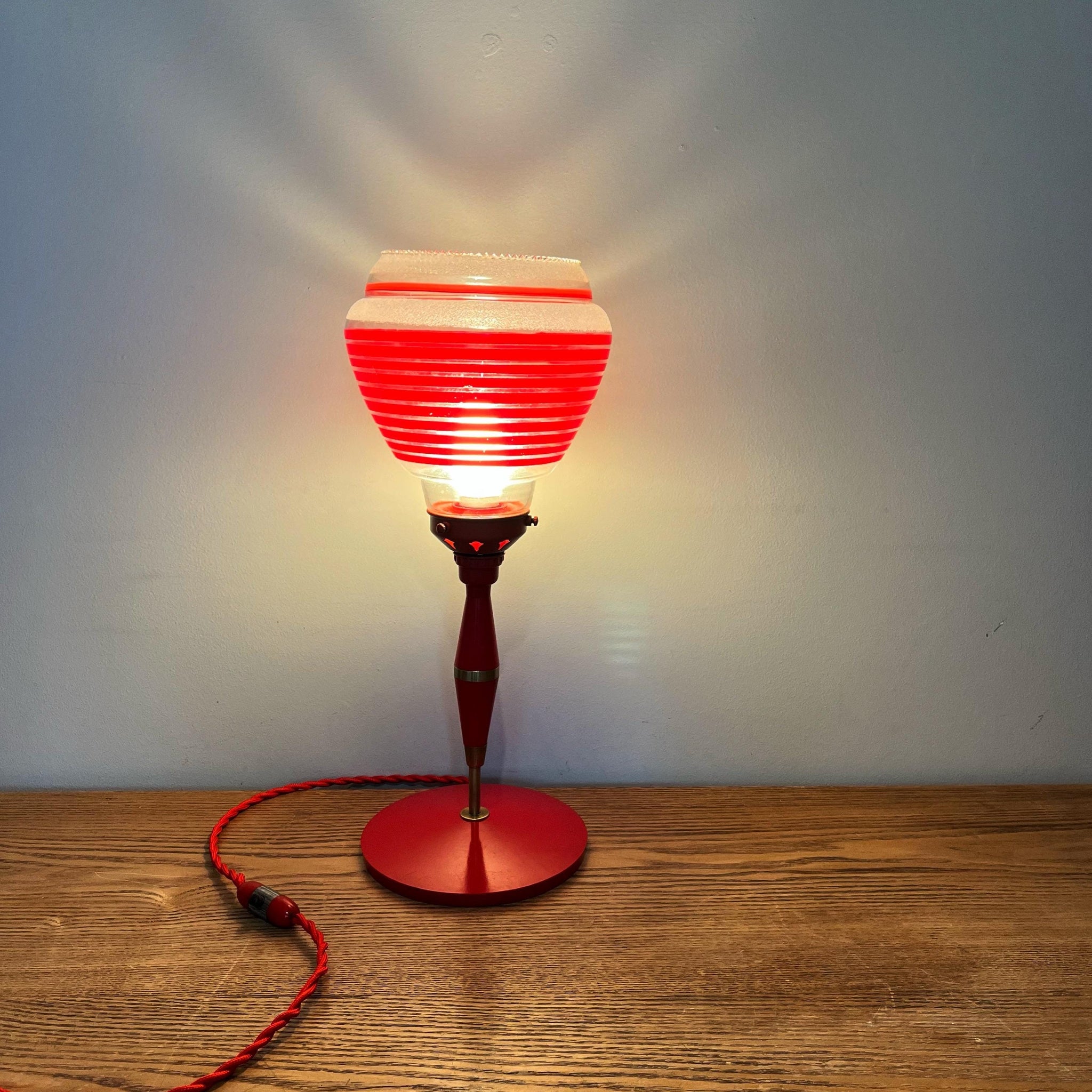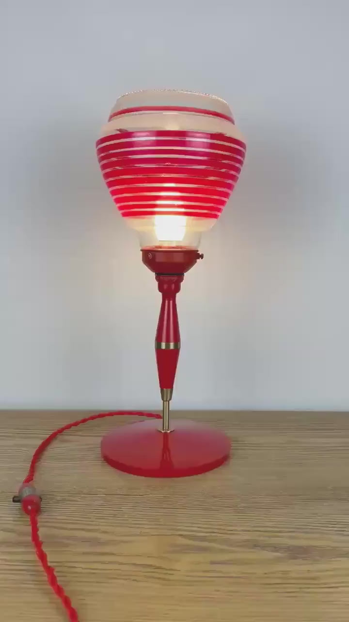 This mid century atomic red lamp is the perfect lighting for a lover of atomic space age decor. This would look gorgeous in a vintage style lounge or in any home with a more modern contemporary look as an eye catching statement piece.