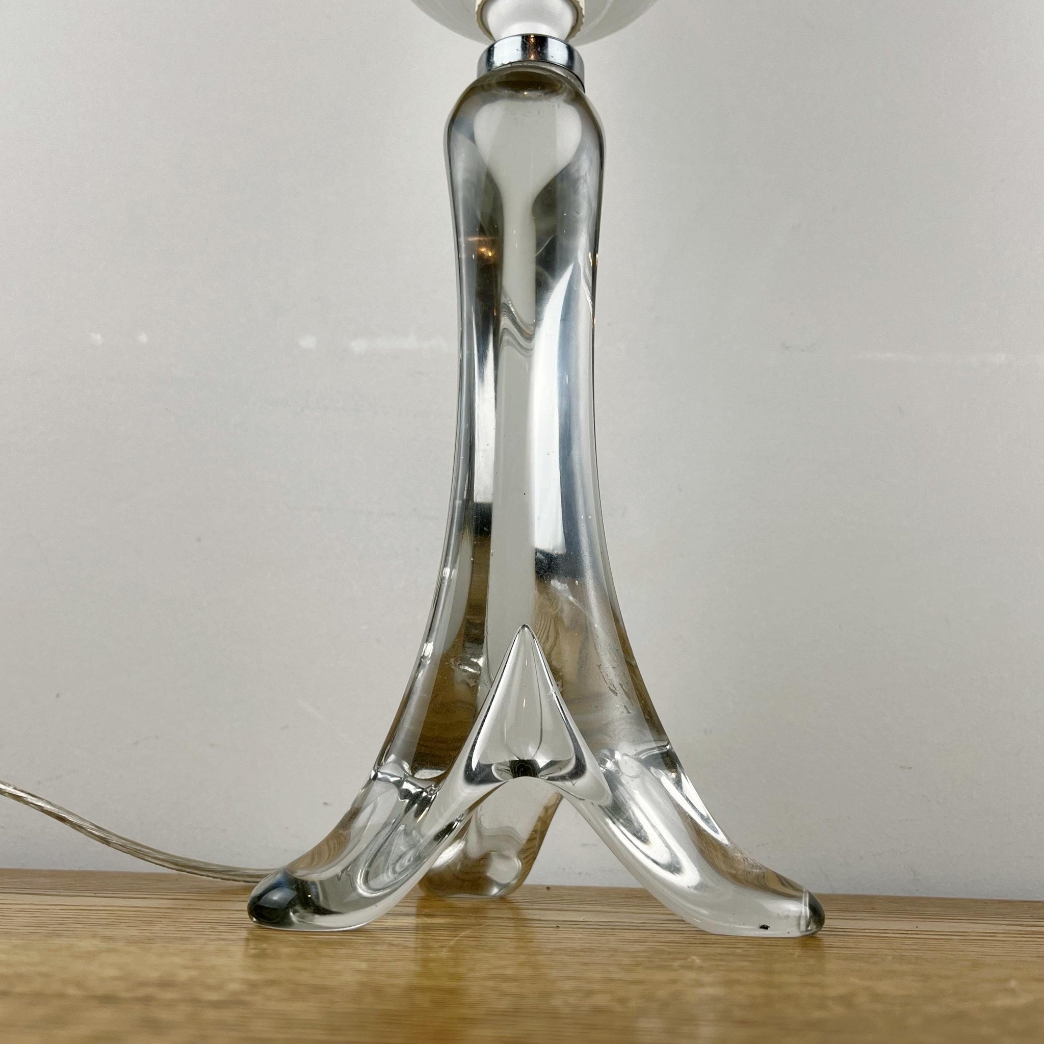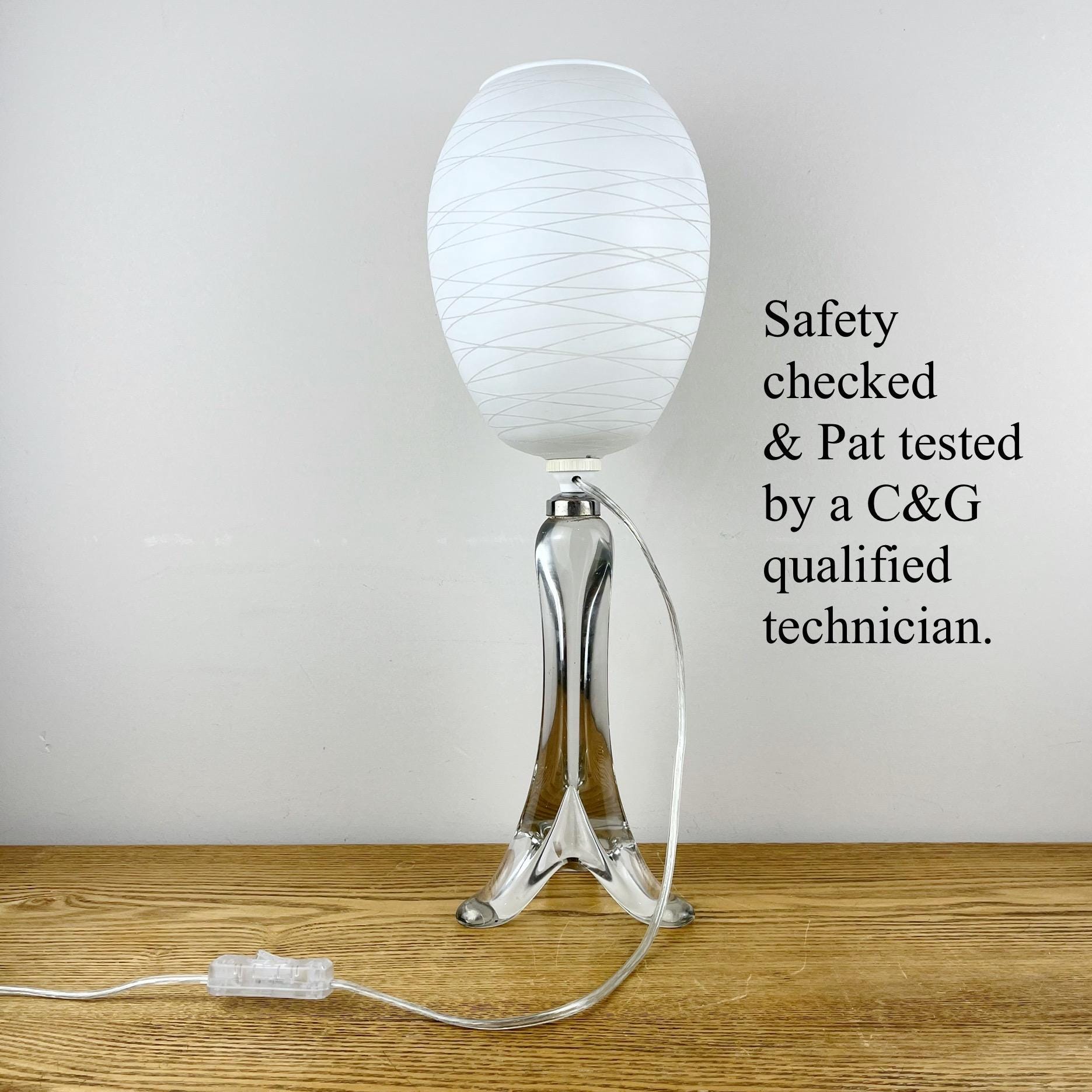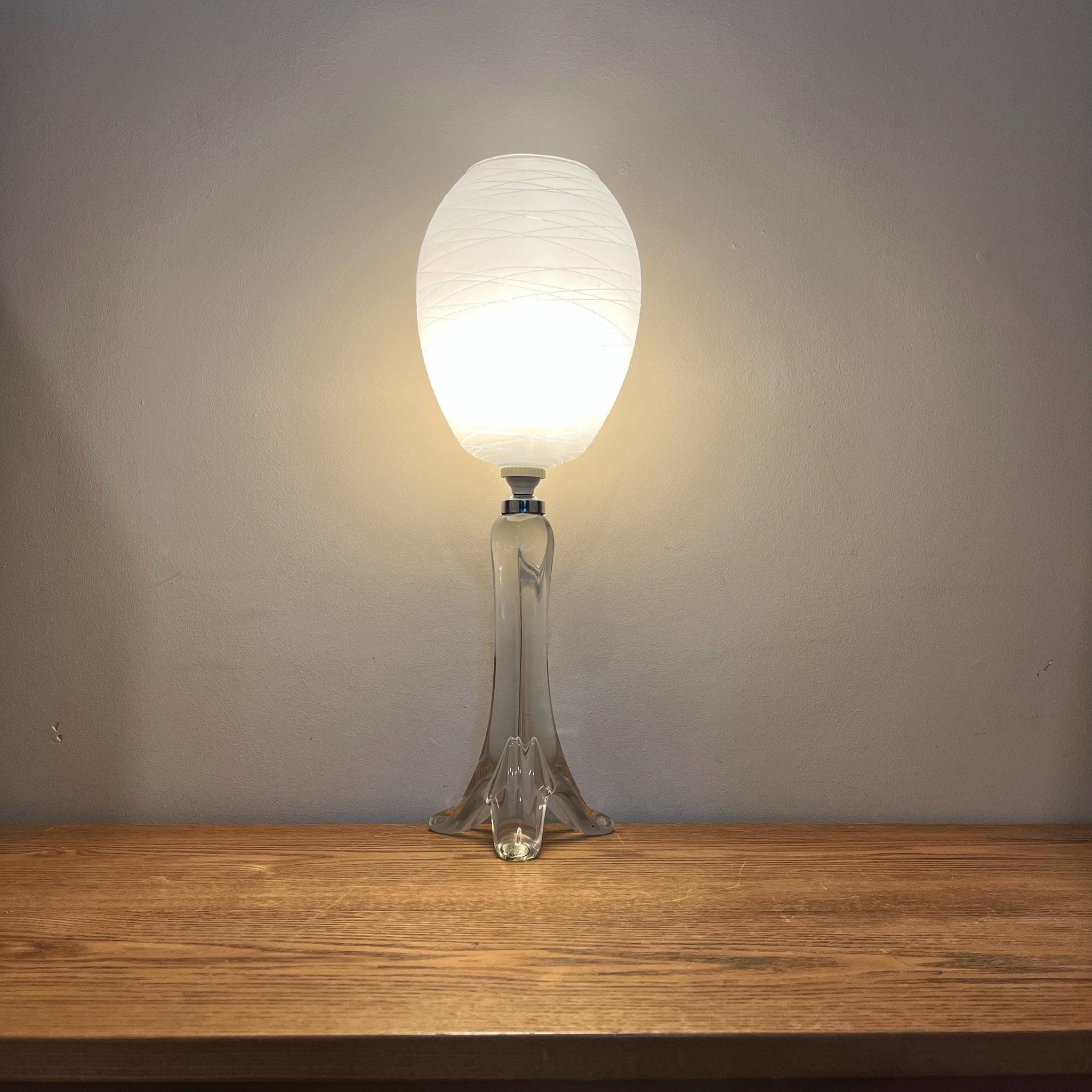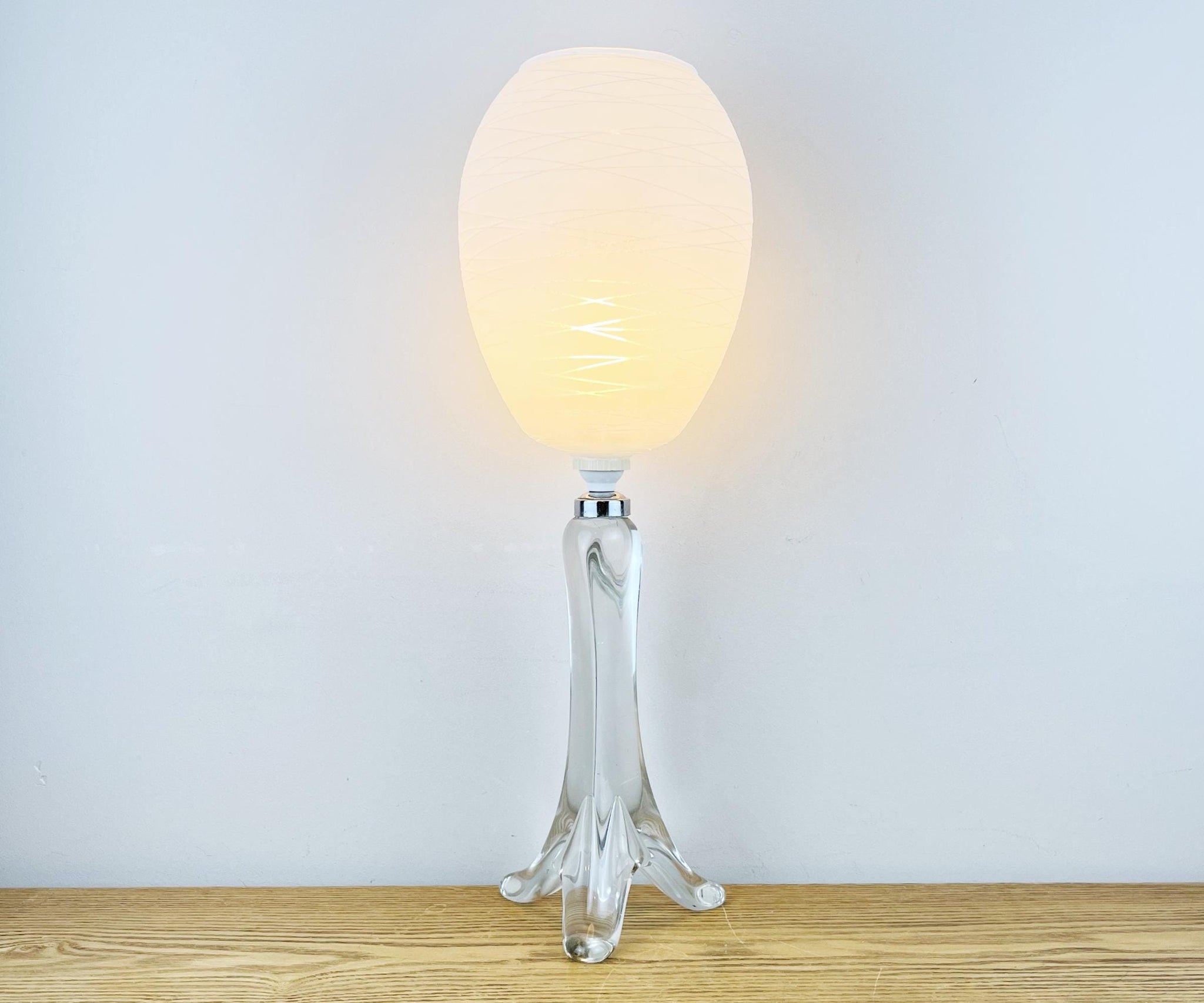 This vintage glass table lamp will add some antique charm to your home decor. The perfect gift for a lover of 1960s lighting or treat yourself to this glorious piece of gleaming Belgian glass. Matched with a beautiful glass shade from the same period.