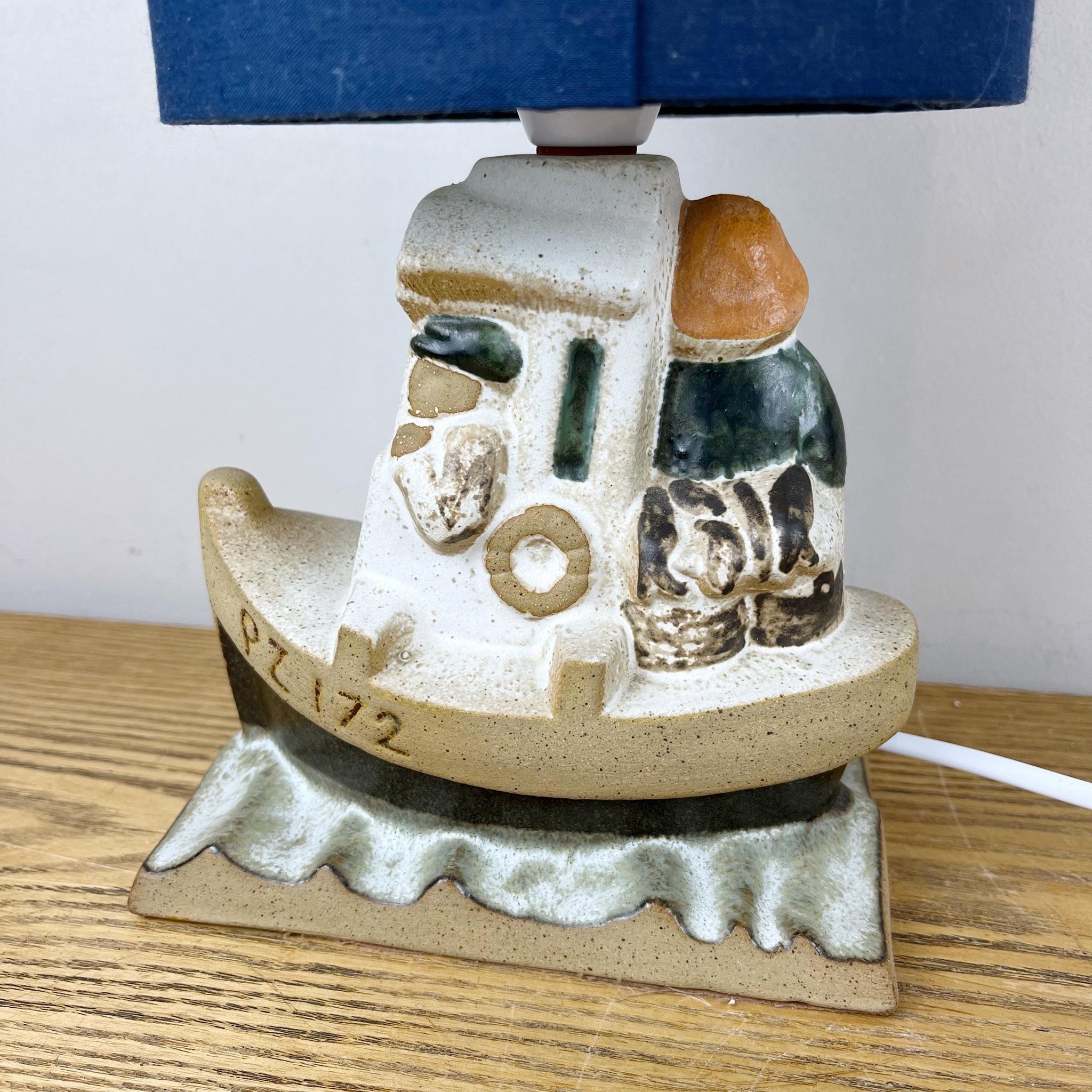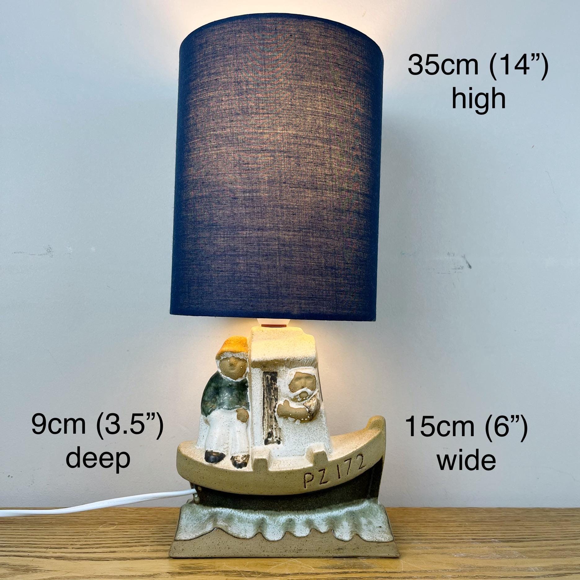 This Tremaen pottery lamp with a Fishing boat theme is the perfect lighting for your vintage home decor. This stoneware lamp will make a gorgeous accent light in a vintage setting or in a lounge with a more modern contemporary look as an eye catching statement piece.