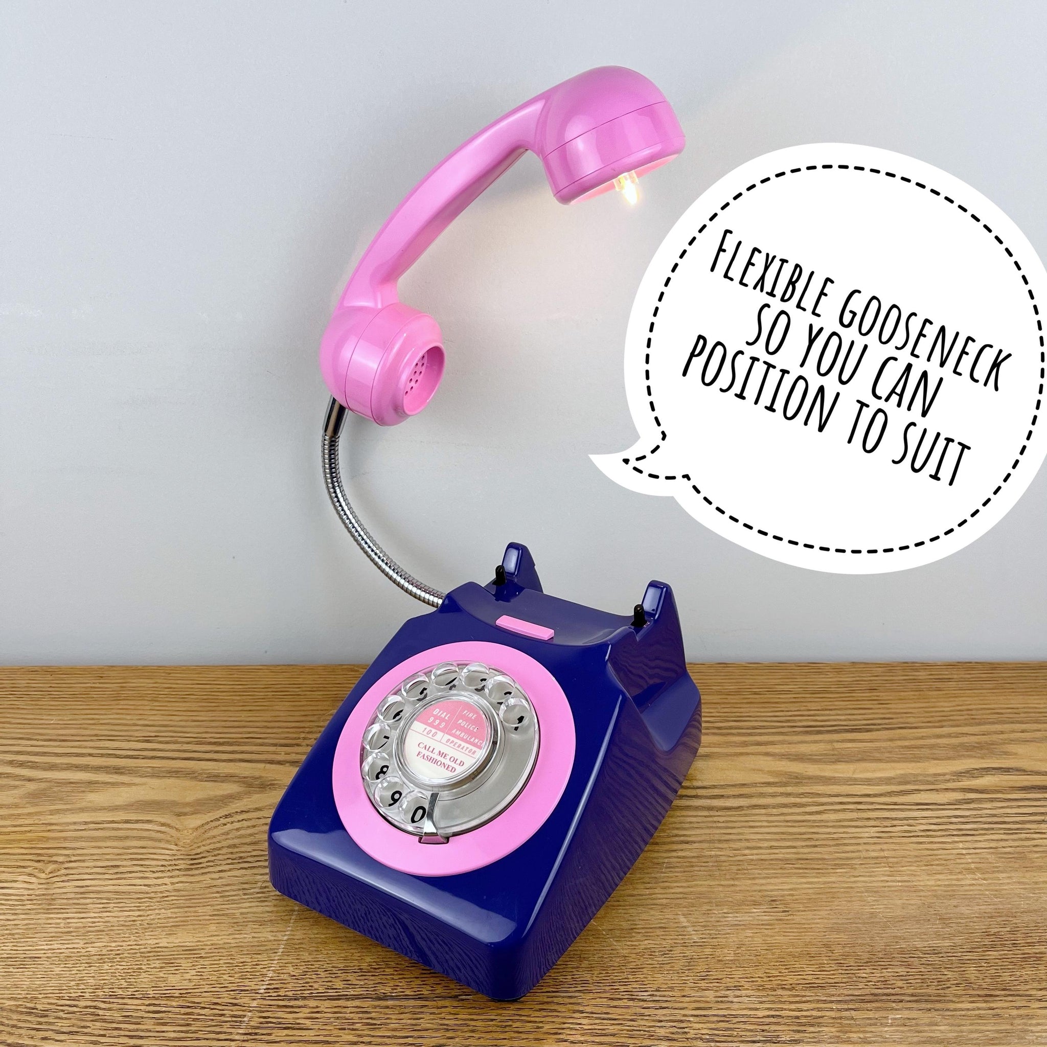 A quirky desk lamp for a navy blue and pink themed home office or bedside lighting for someone who likes unique retro decor or maybe you’re looking for a working from home gift to treat yourself. Imagine the look on their face when they open this unique telephone gift and realise it is also a lamp perfect for a desk or side table. We have them available in lots of different colours.